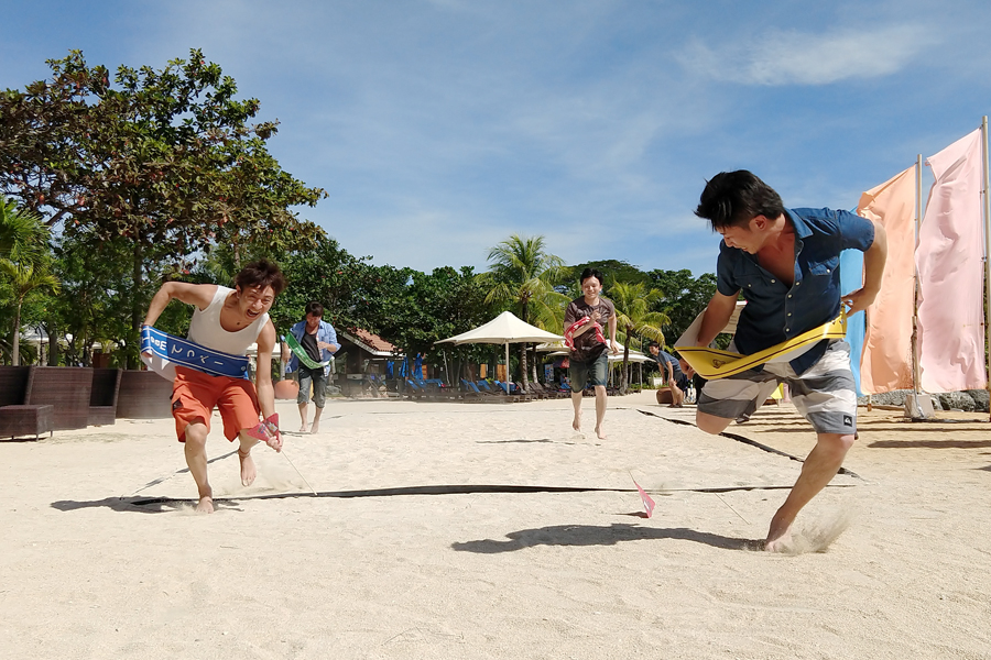 開催場所は、セブ島研修旅行で宿泊しているホテル「JparkIsland」内のプライベートビーチ。