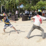 我々の熱さに惹かれ急遽現地のライフセーバー(?)とビーチフラッグ対決を開催!