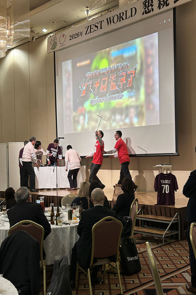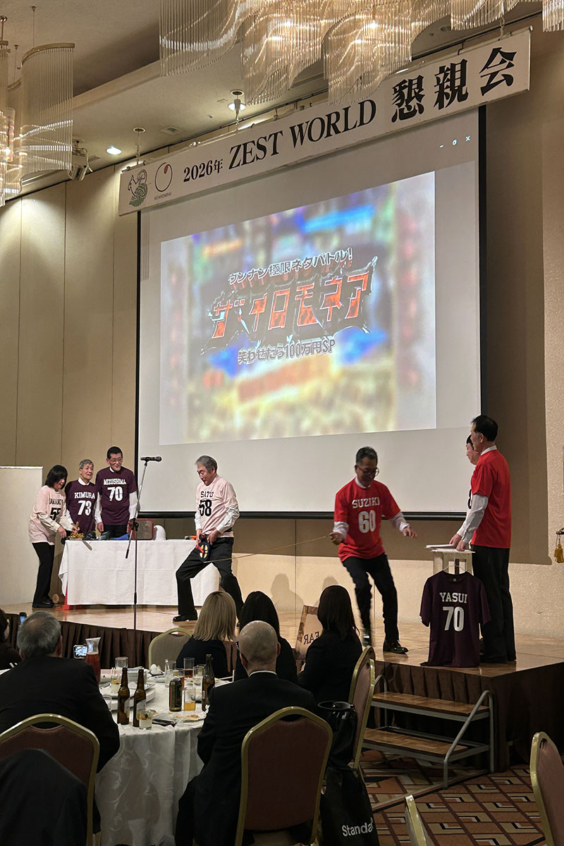 2026年 ゼストワールド 2026年4月10日 by ゼストシステム 2026年 ゼストワールド2026年3月21日、アートホテルにて、第12回 ZEST WORLD を開催しました。今年は12回目、毎年過去最高の人数を更新しています。各営業所から社員も集まり、総人数111名!会場全体に全員の熱気がみなぎるなか、新たな目標や新体制が発表されることで、大きな一体感が生まれました。後半の余興も、業務に負けないほど力の入ったステージが続き、たいへん盛り上がりました。写真や動画からもエネルギーが伝わってきます。ぜひご覧ください。ゼストワールド写真Screenshotゼストワールド動画
