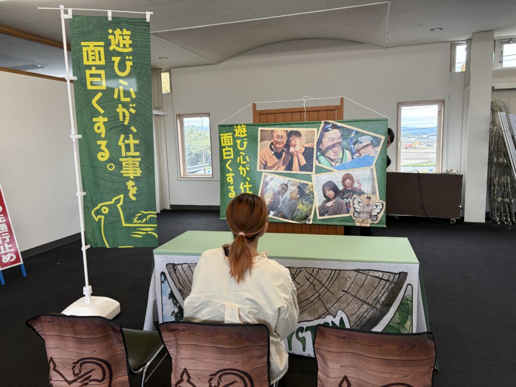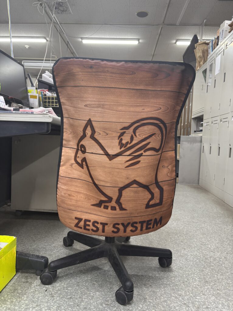 椅子カバーも裏側までデザインが入れられたし、もう全部が弊社・弊社・弊社で面白い。