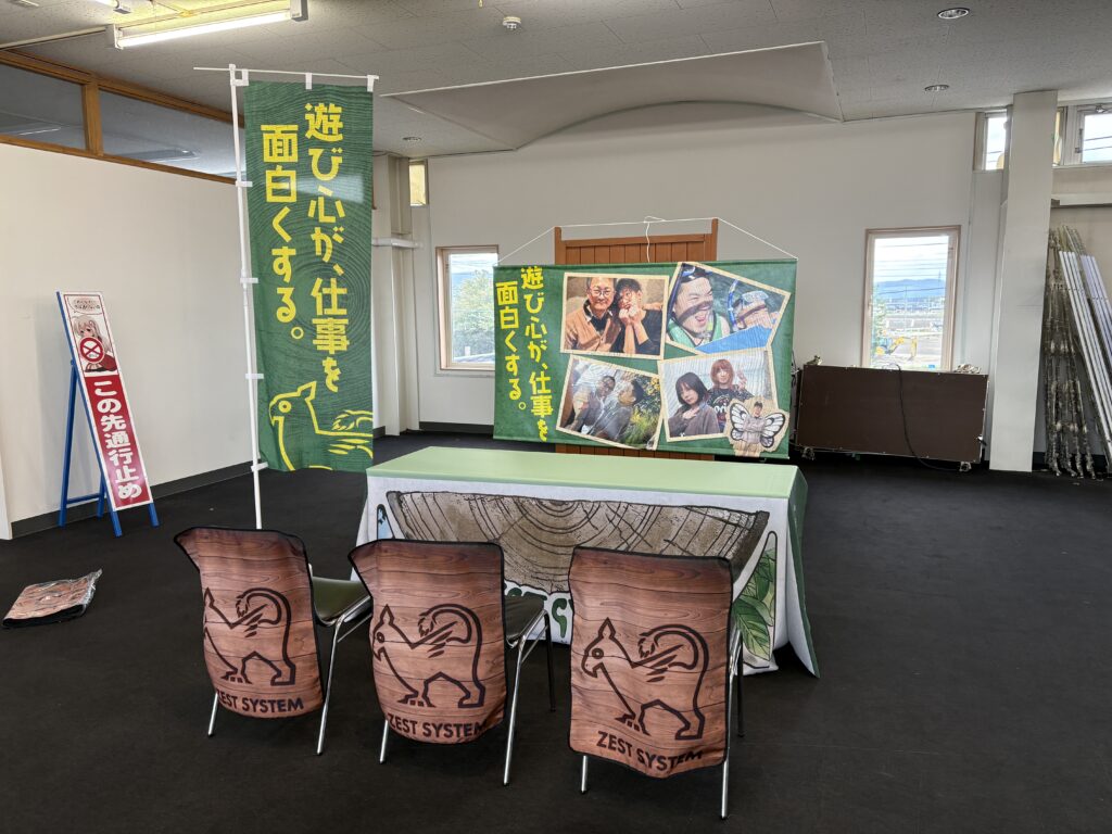 先日(先月)、ゼストの企業説明?ブースのあれやこれやが無いのが寂しいということで、それらのデザインをやらせてもらいました。