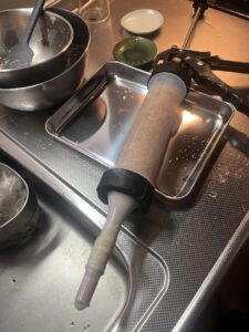 (ボールなどの調理器具もすべて冷凍庫でキンキンに冷やしておきます)