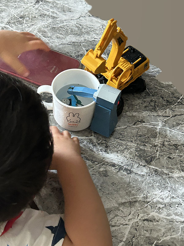 おまけ↓水に沈めたトーマスをクレーンで釣り上げようとする息子(笑)