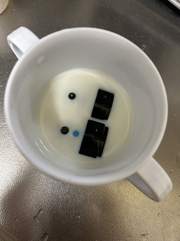 おまけ↓牛乳に浸されるトーマスとパーシー(笑)(煙突と後ろの荷台?のみ出てる)