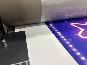 先月、26日に初めて夜間施行に行きました。初めてシートを壁に貼りました。普段とは違いシートが正面にある状態で貼るのは力加減と斜めにならないようにすることが難しく苦戦しました。特に、力加減が難しく私は力強く貼ってしまうことが多いため優しく貼ることが次回までの課題です。