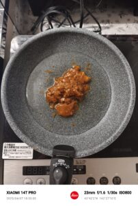 まず初めにフライパンに麻婆豆腐の素と水を混ぜて温めていきます。