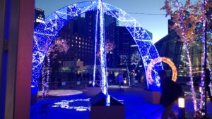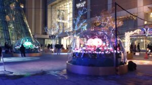 爆買い後すっかり暗くなり帰りの電車もあったのでサササッと駅前に戻ってくると、ちょうどイルミネーションの設置中だったのでパシャリ。