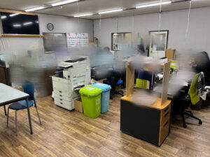 この繁忙期の中、営業さんが机を動かしたり床を貼り替えてくれました。この木目の感じ、札幌みたいで落ち着く😌