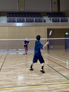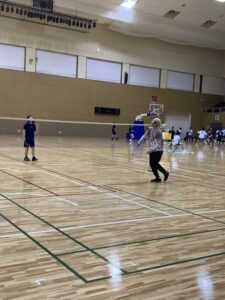 体育館のとなり半分では中学生?がバスケの練習試合をしていて、、、当たり前ですが体力の差をまざまざとみせつけられています。